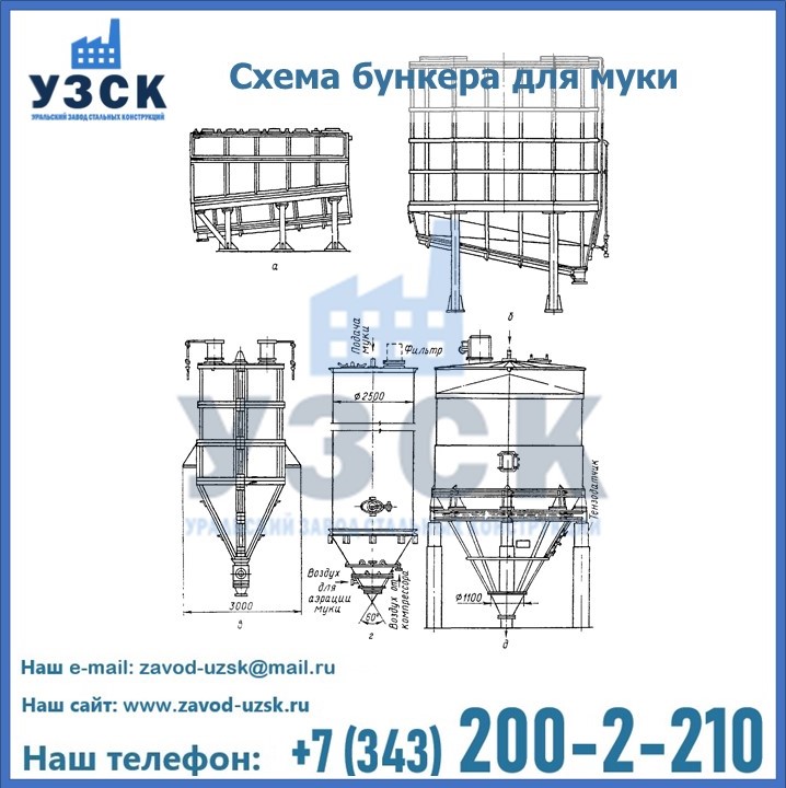 Завод «УЗСК» в Бердске осуществляет проектирование, производство и продажу бункеров для муки. Всю информацию, касающуюся производства, реализации и установки емкостного оборудования можно узнать на нашем сайте или по телефонам, указанным в разделе «КОНТАКТЫ».
