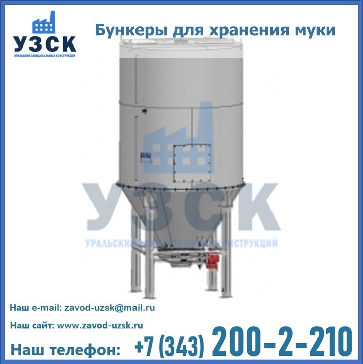 Завод «УЗСК» в Бердске проектирует, производит и поставляет целевое оборудование, в том числе, бункеры для хранения муки и прочих сыпучих материалов.