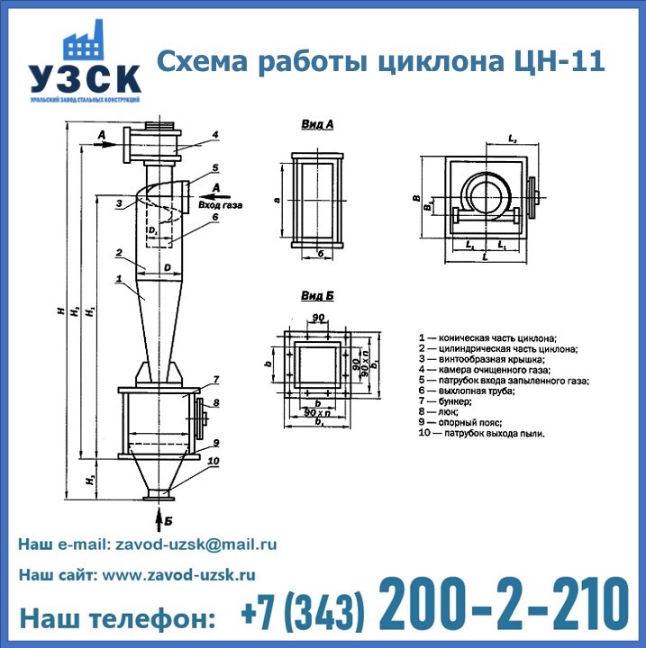 При этом ощутимой разницы в цене между универсальным и узконаправленным, подобранным в соответствии с конкретными техническими требованиями циклоном, нет. Стоимость воздухоочистительного оборудования типа циклон обусловлена маркой и толщиной стали, из которого он изготовлен, сложностью и специфичностью конструкции, наличием дополнительного оснащения (бункер, улитка и другие). При необходимости, на заводе УЗСК в Бердске будет изготовлен циклон по индивидуальным техническим чертежам заказчика.