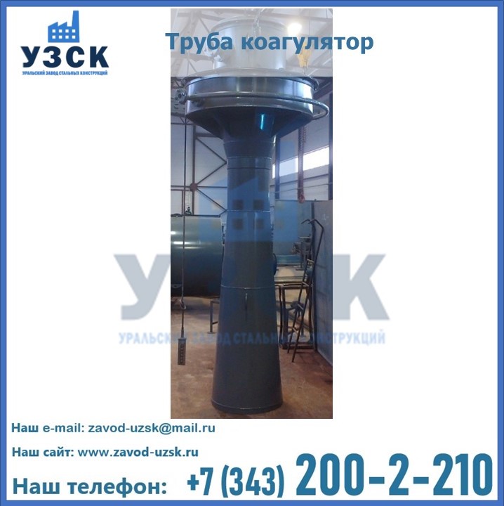 Труба-коагулятор имеет сварной корпус (включает в себя воздушно-подводящий патрубок, конфузор, горловину и диффузор), форсунку (оборудована водоподводящей трубой), а также водяную камеру для пленочного орошения внутренней поверхности конфузора. Основной объем воды подается через форсунку с отбойником, размещенную по оси трубы. Для удобства проведения контроля и ревизий соединение форсунки с трубой сделано легкоразъемным.