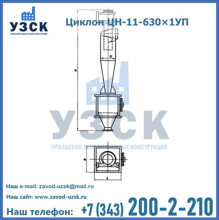 Уральский Завод Стальных Конструкций в Бердске производит и продает надежное, эффективное и производительное оборудование, имеющее длительную гарантию и большой эксплуатационный ресурс. УЗСК также предлагает циклоны из нержавеющей стали высокого качества. По желанию заказчика толщина стали для циклона и бункера может быть увеличена. Заказать и купить циклоны ЦН-11 высокого качества и по доступной цене можно через наш сайт или по указанному в разделе «Контакты» телефону.