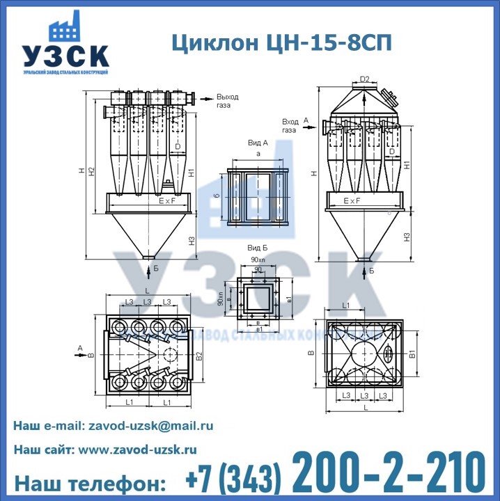 Завод «УЗСК» в Бердске предлагает большой выбор циклонов ЦН-15-500×8СП и прочих устройств, полностью укомплектованных и готовых к эксплуатации. Мы гарантируем соответствие оборудования всем требованиям ГОСТ и ТУ, износостойкость и высокую производительность предлагаемого оборудования. Уральский Завод Стальных Конструкций изготавливает и продает надежное, эффективное и производительное оборудование, имеющее длительную гарантию и большой эксплуатационный ресурс. Если требуется изготовить циклон нестандартных размеров, то такой вариант выполнения заказа тоже предусмотрен, так как предприятие имеет собственные производственные площади и надежных поставщиков. На все поставляемое или производимое оборудование имеются чертежи и прочая техническая документация. Заказать и купить циклоны или прочее оборудование высокого качества и по доступной цене можно через наш сайт или по указанному в разделе