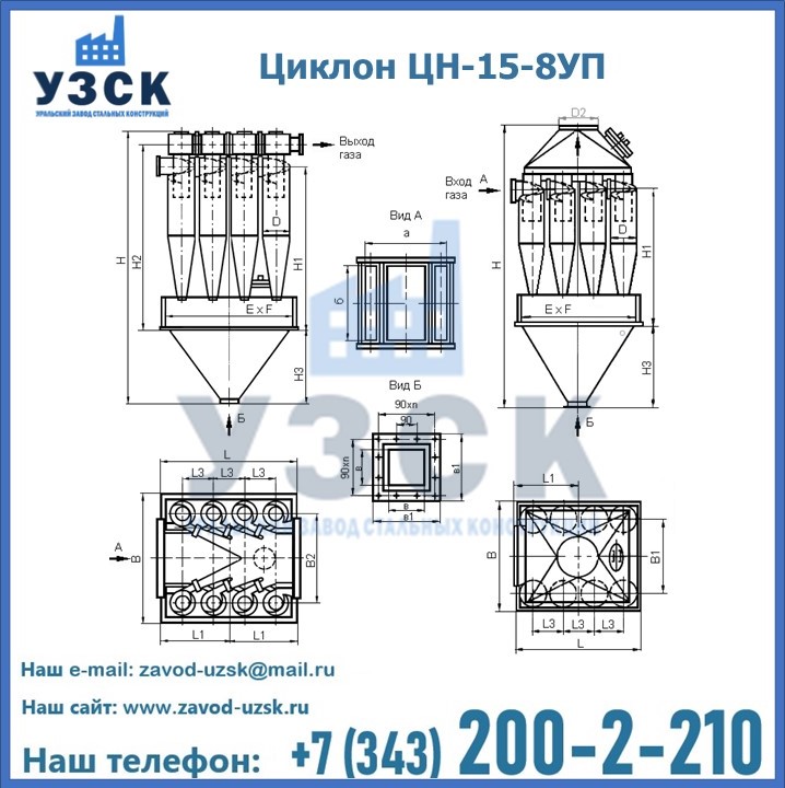 Завод «УЗСК» в Бердске предлагает большой выбор циклонов ЦН-15-500×8УП и прочих устройств, полностью укомплектованных и готовых к эксплуатации. Мы гарантируем соответствие оборудования всем требованиям ГОСТ и ТУ, износостойкость и высокую производительность предлагаемого оборудования. Уральский Завод Стальных Конструкций изготавливает и продает надежное, эффективное и производительное оборудование, имеющее длительную гарантию и большой эксплуатационный ресурс. Если требуется изготовить циклон нестандартных размеров, то такой вариант выполнения заказа тоже предусмотрен, так как предприятие имеет собственные производственные площади и надежных поставщиков. На все поставляемое или производимое оборудование имеются чертежи и прочая техническая документация. Заказать и купить циклоны или прочее оборудование высокого качества и по доступной цене можно через наш сайт или по указанному в разделе «Контакты» телефону.