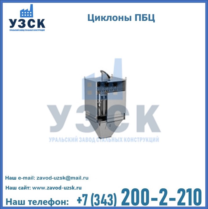 Завод «УЗСК» в Бердске предлагает приобрести циклоны ПБЦ и прочие устройства, полностью укомплектованные и готовые к эксплуатации. Мы гарантируем соответствие оборудования всем требованиям ГОСТ и ТУ, износостойкость и высокую производительность предлагаемого оборудования. Уральский Завод Стальных Конструкций изготавливает и продает надежное, эффективное и производительное оборудование, имеющее длительную гарантию и большой эксплуатационный ресурс. Если требуется изготовить циклон нестандартных размеров, то такой вариант выполнения заказа тоже предусмотрен, так как предприятие имеет собственные производственные площади и надежных поставщиков. На все поставляемое или производимое оборудование имеются чертежи и прочая техническая документация. Заказать и купить циклоны или прочее оборудование высокого качества и по доступной цене можно через наш сайт или по указанному в разделе «Контакты» телефону.