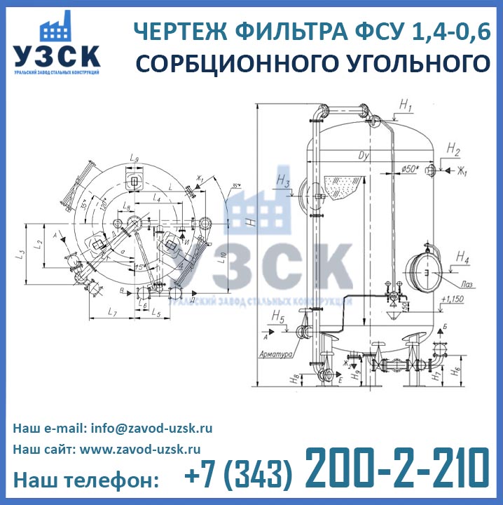 Если вы ищете фильтры ФСУ-1,4-0,6 в Бердске от изготовителя, то Вы на правильном пути! Уральский завод стальных конструкций – непосредственный производитель сорбционных фильтров ФСУ, предлагающий самые выгодные цены на ФСУ-1.4-0.6 в Бердске. По окончании процесса производства угольные фильтры проходят гидравлические испытания пробным давлением 0,9 МПа на аттестованном гидростенде, находящимся в собственности завода УЗСК. Мы гарантируем высокое качество выпускаемой продукции, и в этом уже убедились ведущие предприятия промышленного сектора России и стран ЕАЭС (см. раздел «Наши клиенты»).