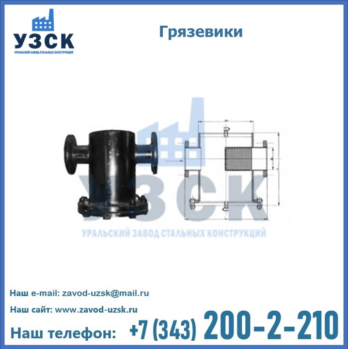 Уральский Завод Стальных Конструкций занимается производством и реализацией грязевиков в городе Бердск, в наличии устройства горизонтального и вертикального типа, соответствующие всем требованиям и стандартам, в том числе условиям «Правил устройства и безопасной эксплуатации».
