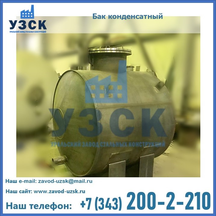 Многие заказчики стараются конденсатные баки купить по выгодной цене в компании «УЗСК» в Бердске. Причин несколько. Производитель поставляет емкости с полным комплектом лестниц, площадок обслуживания. Бак после гидравлических испытаний покрывают специальной внутренней и наружной краской, накладывают теплоизоляцию или наваривают крепеж для навески минматов. Условия теплоизоляции согласуются с заказчиком.