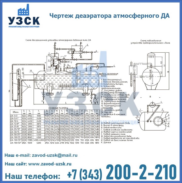 Приобрести качественное оборудование, в том числе, деаэраторы ДА, можно в компании УЗСК в Бердске. Мы предлагаем долговечную и надежную продукцию по приемлемой цене. Заказать и купить деаэраторы или другие изделия высокого качества можно через сайт Уральского Завода Стальных Конструкций, или позвонив по указанному в разделе «Контакты» телефону.