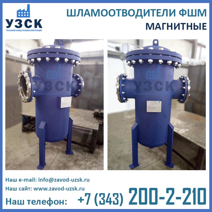Являясь непосредственным изготовителем фильтров магнитных ФШМ, Уральский завод стальных конструкций предлагает самые низкие цены на шламоотделители ФШМ Ду250 в Бердске. Производство магнитных шламоотводителей осуществляется в самые короткие сроки специалистами сварочного производства НАКС по аттестованной технологии сварки при помощи сварочного оборудования, аттестованного Национальным агентством контроля сварки.